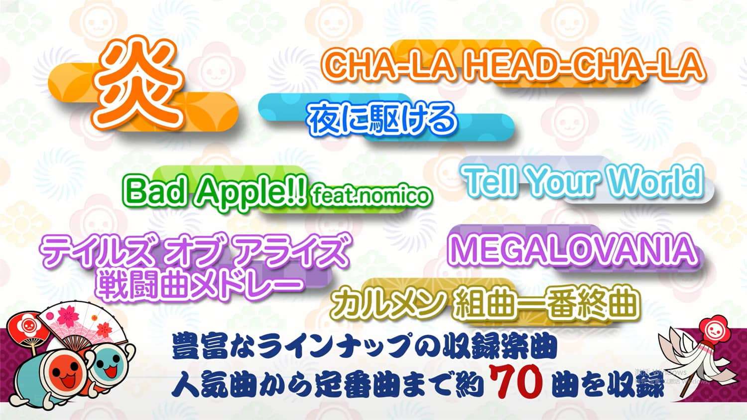 官网自营 休闲益智 2022-04-08 16:41:07 太鼓达人 鼓咚大师!/Taiko no Tatsujin: The Drum Master! 《太鼓达人 鼓咚大师!》是一款经典的音乐节奏游戏。玩家需要根据屏幕上滚动的音符,在正确的时机敲击虚拟太鼓的鼓面或鼓边,以配合各种流行歌曲、动漫曲目和游戏音乐的节拍。游戏玩法直观易上手,但挑战难度循序渐进,考验玩家的节奏感和反应速度。它支持单人游玩和多人联机模式,非常适合与朋友家人一同享受击鼓的乐趣,是一款兼具休闲娱乐与轻度竞技的派对游戏。游戏截图: