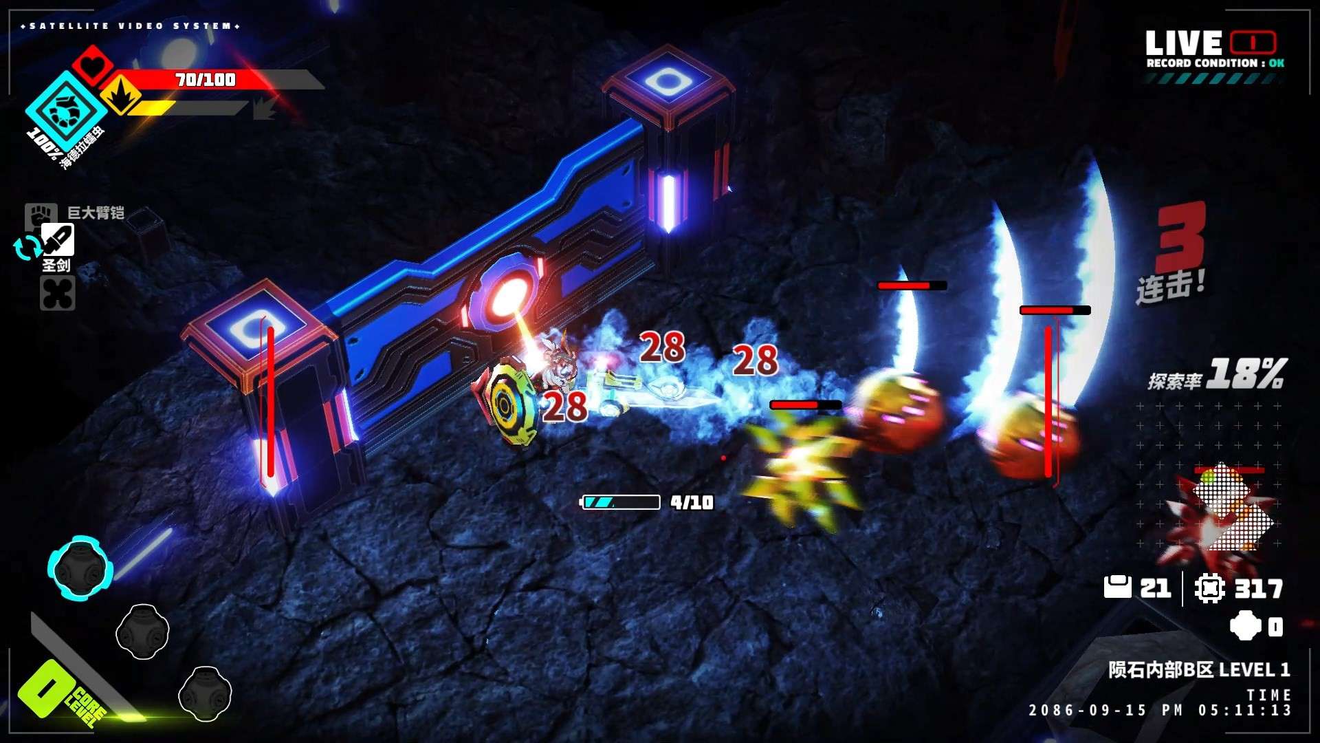 官网自营 动作游戏 2022-04-04 17:28:35 金属之子/METALLIC CHILD 《金属之子》是一款以科幻机甲为背景的Roguelite动作游戏。玩家将扮演少女洛娜,操控巨大的机甲“金属之子”,在濒临崩溃的空间站中展开冒险。游戏核心玩法为俯视角高速战斗,强调爽快的连击与精准的闪避,通过击败敌人获取零件来实时强化机甲性能。其战斗系统富有深度,结合了抓取、投掷等特色动作,并融入了Roguelite的随机元素与永久成长机制,每次冒险都能获得新的强化与战斗体验。整体风格硬核且节奏紧凑,属于注重操作与构建的动作游戏范畴。游戏截图: