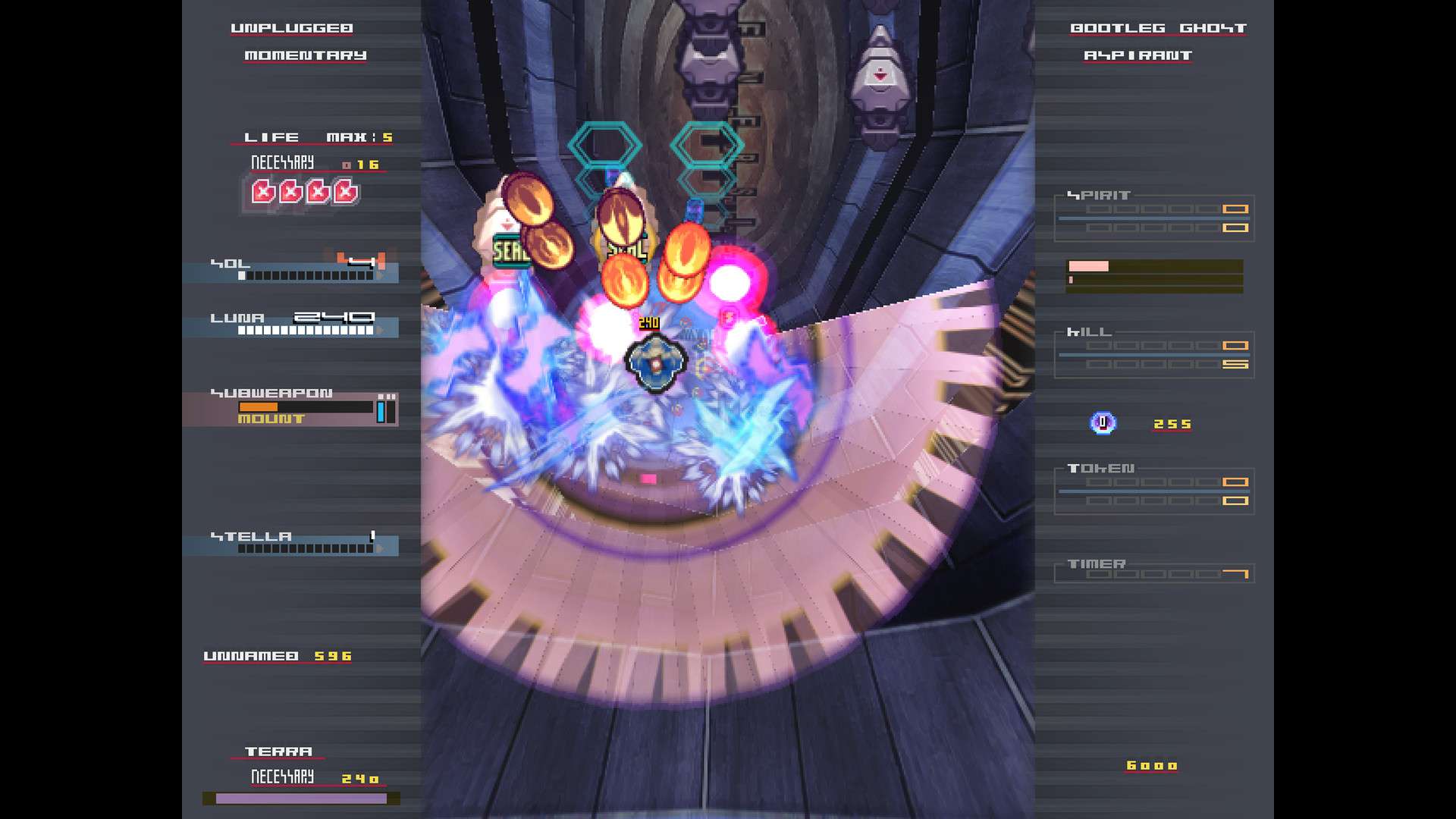 官网自营 射击游戏 2022-07-04 16:14:04 Hellsinker. 《Hellsinker.》是一款由日本同人社团“souvenir circ.”开发的垂直卷轴弹幕射击游戏(STG)。游戏以其极其复杂的系统、深度的自定义机制和晦涩难懂的剧情设定而闻名。玩家需要操控风格迥异的机体,在铺天盖地的华丽弹幕中穿梭,并运用独特的“种子”系统、灵魂吸收与释放等机制进行攻击与生存。其硬核的玩法、丰富的隐藏要素和充满哲学与神话隐喻的碎片化叙事,使其成为STG爱好者心中一款颇具挑战性和研究深度的经典作品。游戏截图: