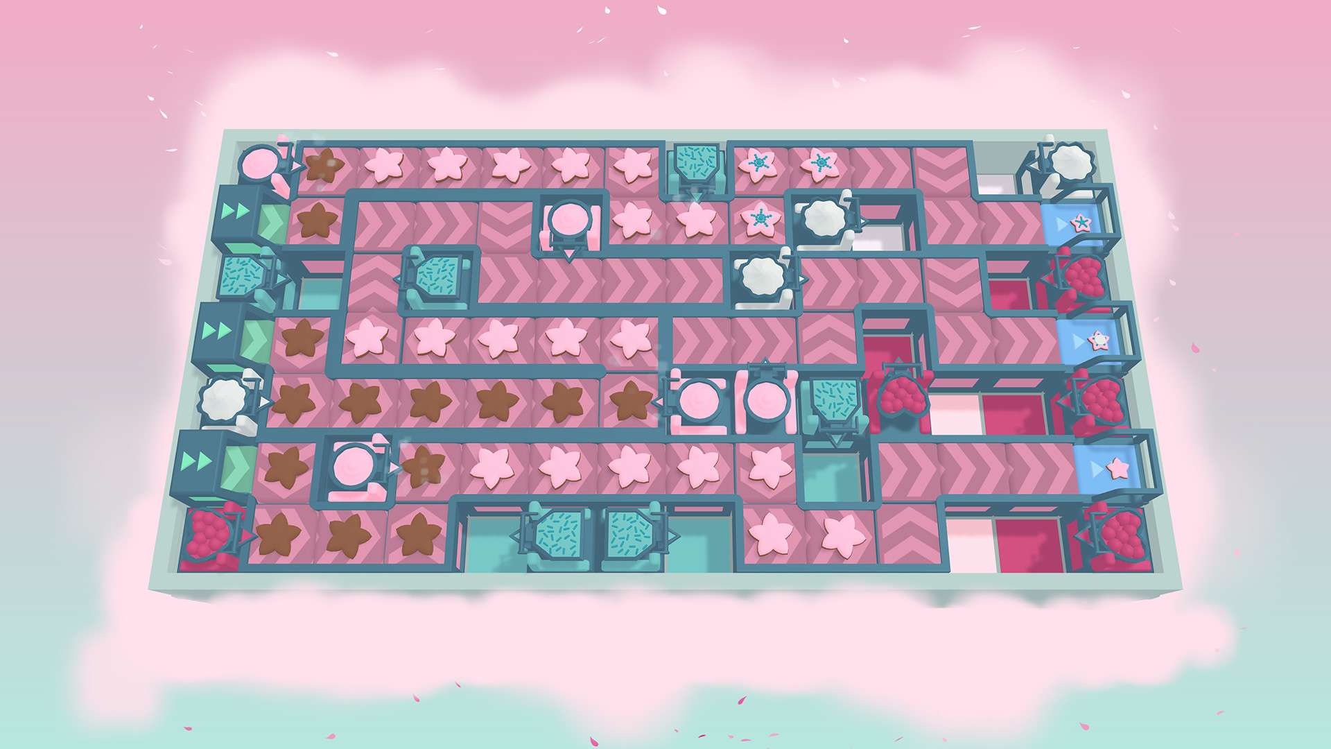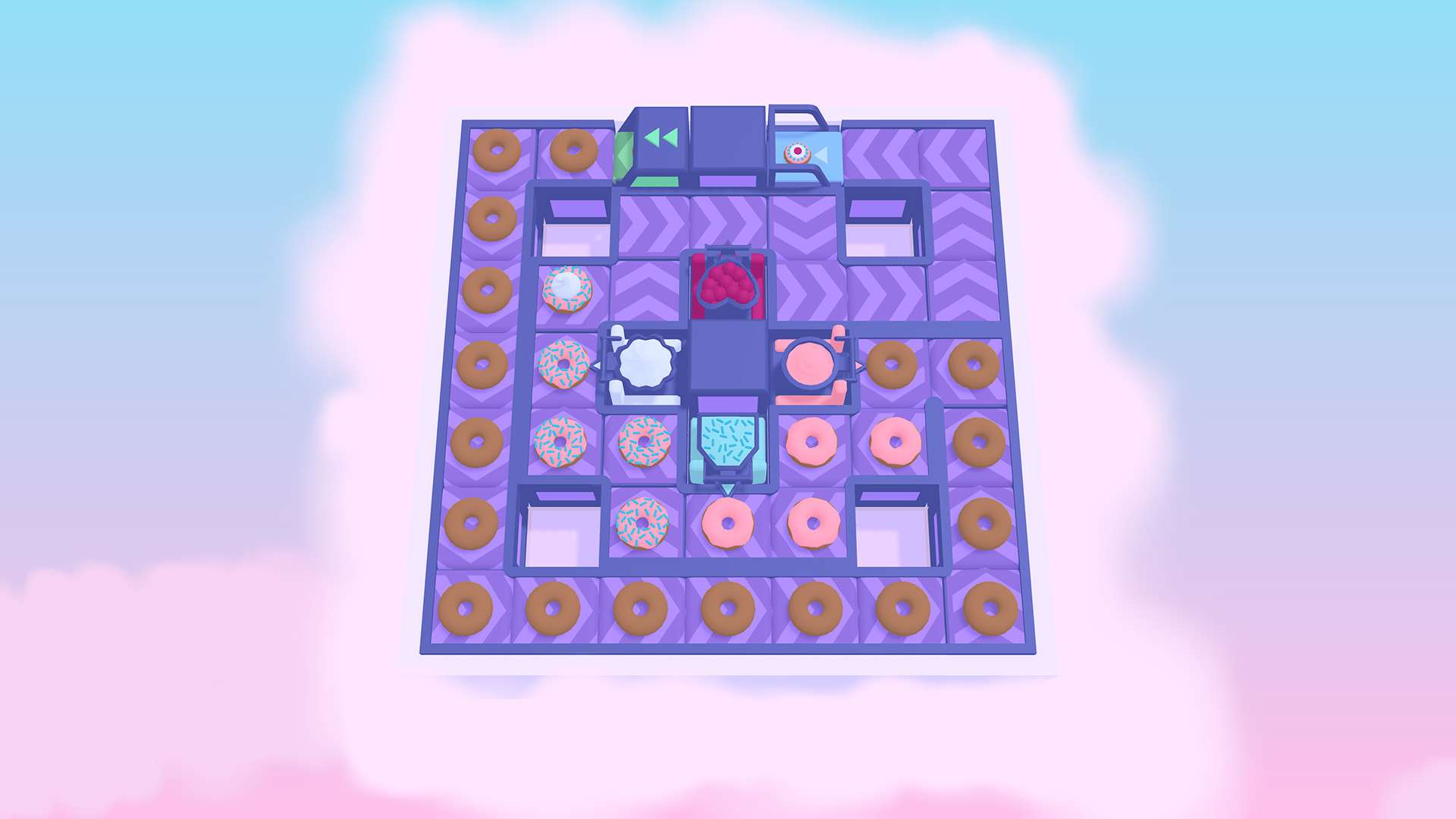 官网自营 休闲益智 2022-07-12 17:39:48 鲜冻/Freshly Frosted 《鲜冻/Freshly Frosted》是一款以甜甜圈工厂流水线为主题的休闲益智游戏。玩家需要扮演一名传送带规划师,在网格状的地板上铺设、旋转和连接传送带,将新鲜出炉的甜甜圈依次送往糖霜机、撒料站和包装台,最终完成订单。游戏核心玩法是空间解谜与路径规划,关卡设计精巧且富有挑战性,随着流程推进会不断引入新的机关和传送带类型。其画风清新可爱,氛围轻松治愈,非常适合喜欢动脑思考、享受有序规划带来成就感的玩家。游戏截图: