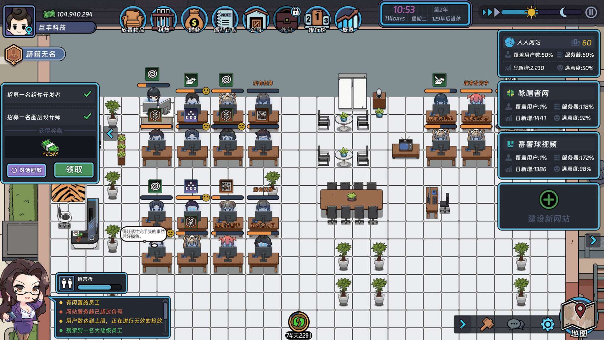 官网自营 模拟经营 2023-08-02 12:14:31 互联网大亨/Internet tycoon 《互联网大亨》是一款模拟经营类游戏。玩家将扮演一名互联网创业者,从零开始建立自己的数字帝国。游戏核心玩法包括:规划并建设数据中心、研发各类网络服务与应用、管理技术团队与资金流、在虚拟市场中与竞争对手博弈,并最终通过战略决策成长为全球互联网巨头。游戏高度模拟了科技公司的运营生态,注重资源管理、市场策略和长期发展规划,为玩家提供了深度且富有成就感的商业模拟体验。游戏截图: