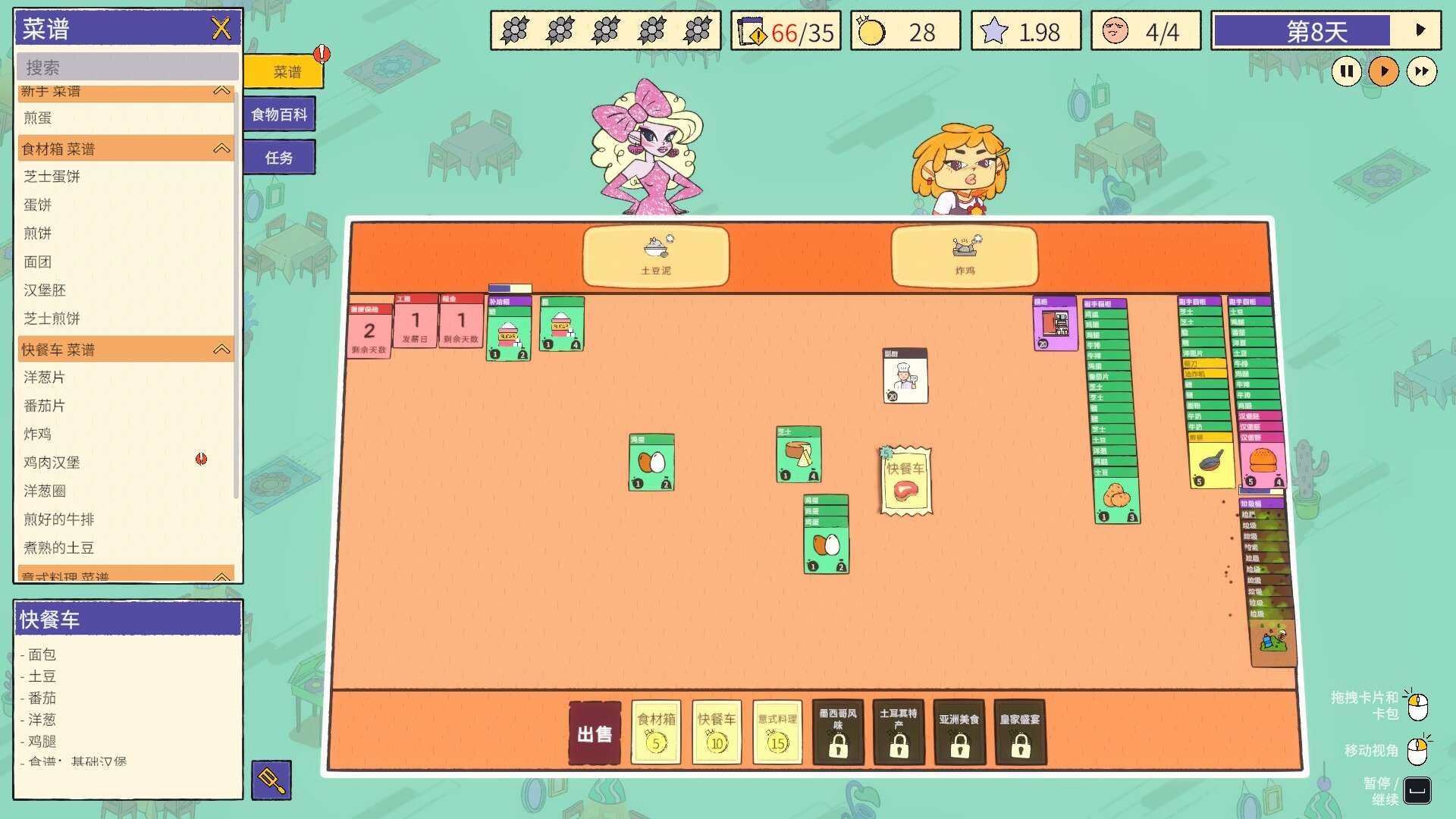 官网自营 休闲益智 2026-02-07 17:48:23 食神的卡组/Sizzle & Stack 《食神的卡组/Sizzle & Stack》是一款以厨房烹饪为主题的休闲益智游戏。玩家需要扮演厨师,通过快速反应和策略性操作,完成各种订单挑战。游戏核心玩法融合了卡牌管理与即时操作,玩家需合理使用手中的“食材卡牌”进行组合与烹饪,在紧张的时间限制内堆叠、翻转食材,以制作出符合要求的完美菜肴。其快节奏的多人合作或竞争模式,与《胡闹厨房》系列有异曲同工之妙,强调手眼协调、团队配合与临场决策,适合好友聚会或轻松休闲时游玩。游戏截图:
