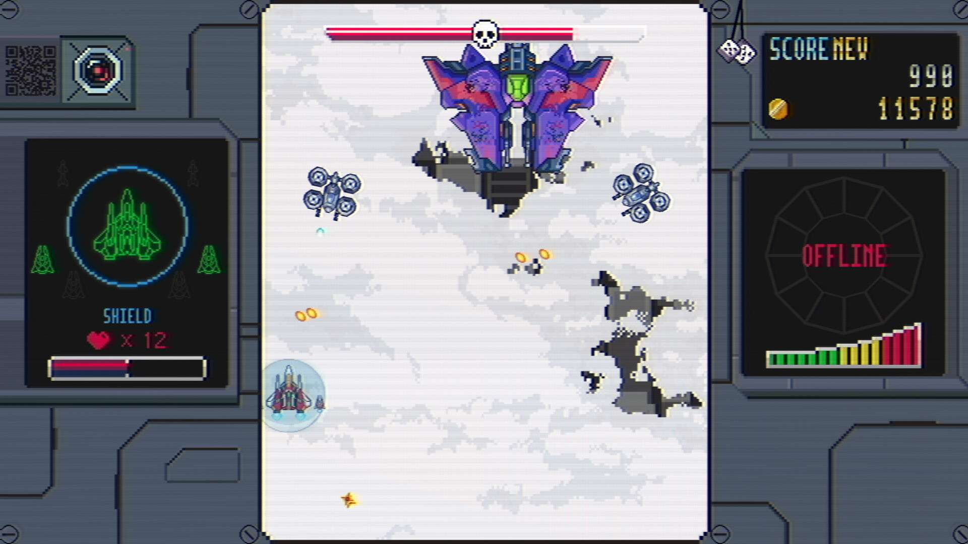官网自营 射击游戏 2023-10-20 12:35:23 红色威龙/RedRaptor 《红色威龙》是一款经典的纵版卷轴飞行射击游戏(STG)。玩家将操控一架红色战机,在充满敌机和密集弹幕的关卡中穿梭,通过灵活移动和精准射击来摧毁敌人。游戏节奏紧张刺激,考验玩家的反应速度和躲避技巧,是街机时代射击游戏的典型代表。其核心玩法与《雷电》、《打击者1945》等作品类似,专注于弹幕躲避和爽快的清版体验,因此归类于射击游戏大类。游戏截图: