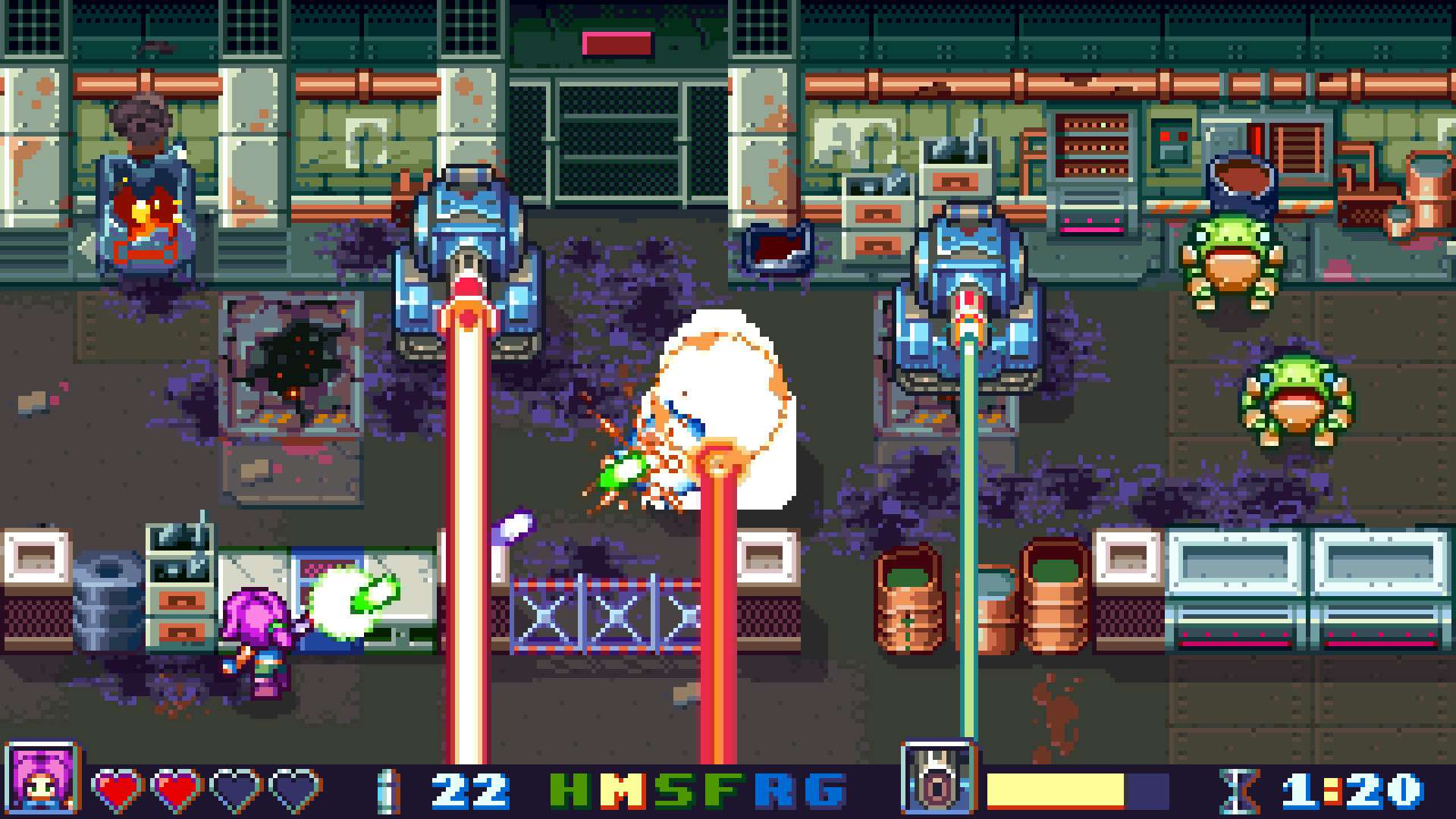 官网自营 动作游戏 2023-11-15 23:01:42 机械狂徒/Bot Vice 《机械狂徒/Bot Vice》是一款复古风格的俯视角动作射击游戏。玩家将扮演一名孤胆警探,闯入被邪恶机器人占领的城市,使用手中的双枪与各种机械敌人展开激烈战斗。游戏核心玩法强调高速移动、精准射击和快速反应,玩家需要在枪林弹雨中穿梭,消灭一波波敌人并挑战强大的头目。其像素美术风格和快节奏的街机式体验,让人联想到经典的清版射击游戏,属于以爽快战斗和操作技巧为核心的动作游戏范畴。游戏截图: