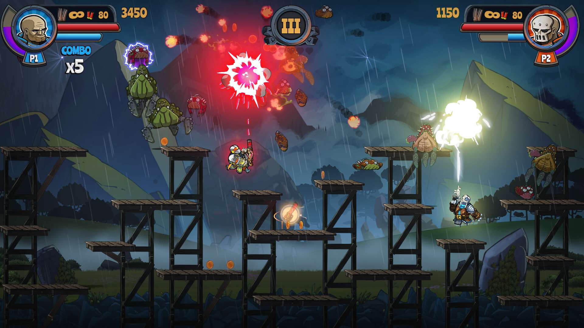 官网自营 射击游戏 2024-04-18 09:44:36 骑士与枪/Knights & Guns 《骑士与枪》是一款融合了中世纪骑士与热兵器元素的俯视角射击游戏。玩家将扮演一名武装到牙齿的骑士,在充满魔物与敌人的奇幻战场上,使用包括枪械、火炮在内的现代武器进行爽快的战斗。游戏核心玩法强调快节奏的射击、走位与资源管理,通过击败敌人获取更强力的装备,体验用“枪炮”诠释骑士精神的独特反差乐趣。其俯视角操作与密集的敌潮设计,为玩家提供了紧张刺激的割草式战斗体验。游戏截图: