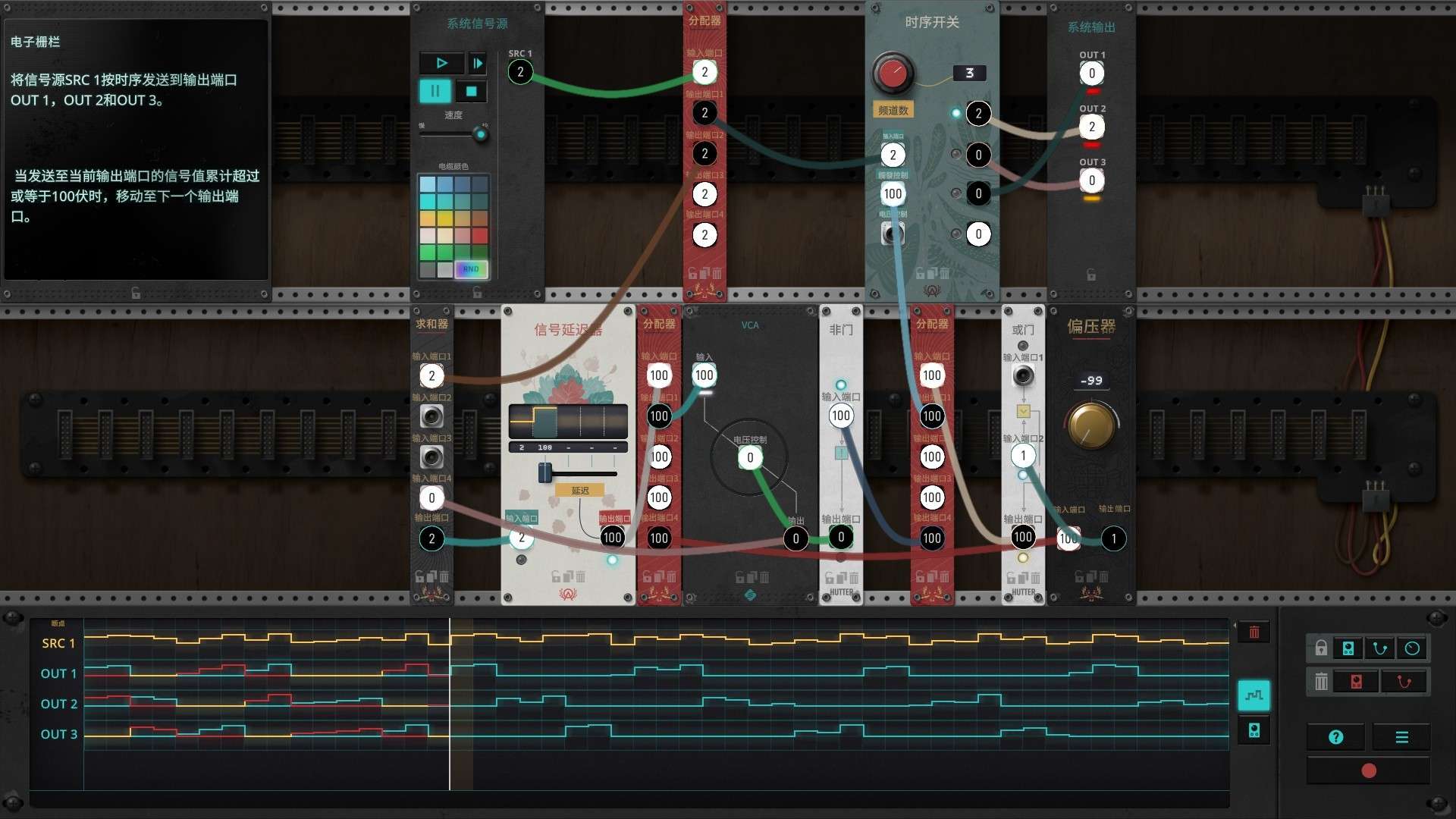 官网自营 冒险解密 2024-04-21 17:26:05 信号法则/The Signal State 《信号法则》是一款以电子工程和逻辑解谜为核心的冒险解密游戏。玩家扮演一名无线电爱好者,通过连接、调整和修复各种老式合成器、效果器和录音设备,解决一系列复杂的电路谜题。游戏的核心玩法在于理解信号流、频率调制和声音合成原理,将散乱的模块与线缆组合成能正常工作的系统。它没有恐怖或动作元素,而是营造了一种沉浸、专注且富有成就感的氛围,引导玩家在充满复古科技感的世界中,逐步揭开一个关于声音与记忆的宁静故事。游戏截图: