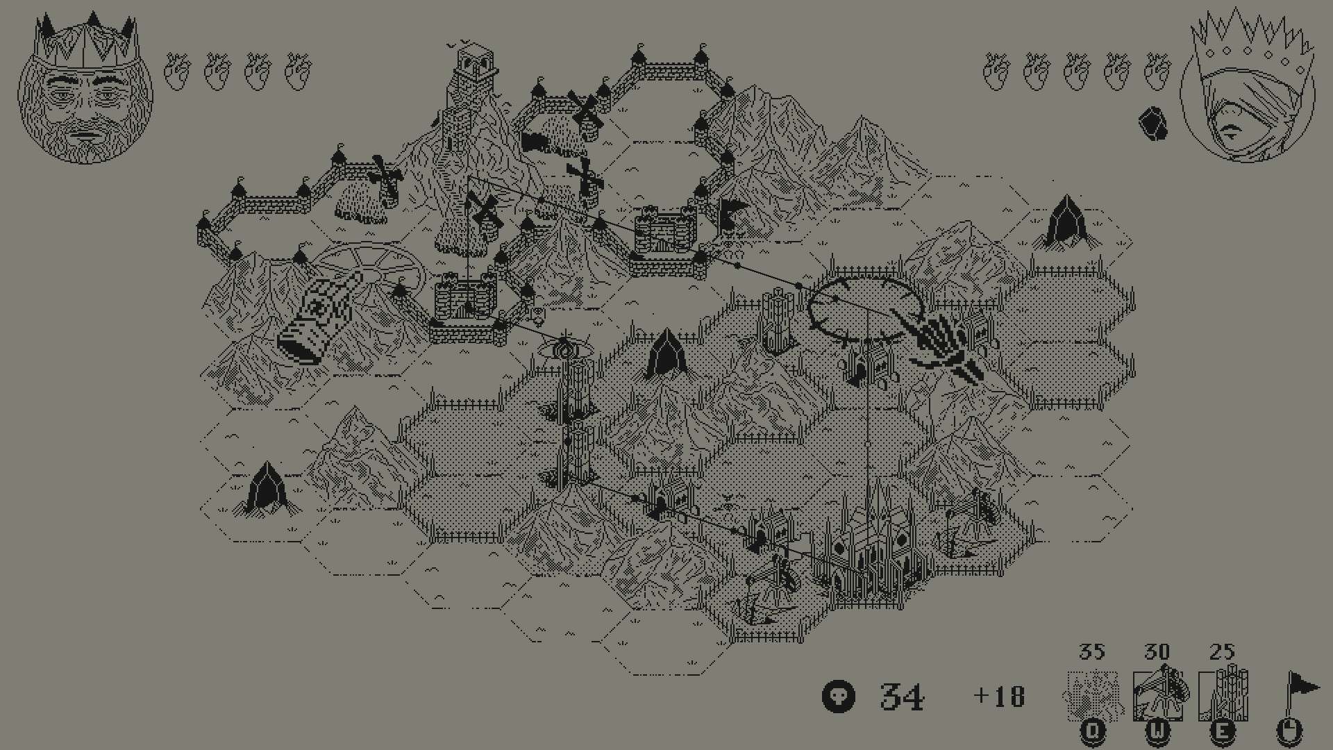官网自营 策略 2024-04-30 17:39:26 死亡之冠/Death Crown 《死亡之冠》是一款风格独特的像素风策略游戏。玩家将扮演死神,指挥由骷髅、幽灵等亡灵组成的军团,在极简的棋盘式地图上展开征服。游戏核心玩法融合了即时战略的快速决策与回合制策略的深度规划,要求玩家在有限的行动点数内,合理调度单位、占领据点并击溃敌方势力。其标志性的黑白红三色美术与宏大的管弦乐营造出肃杀而史诗的氛围。尽管体量小巧,但游戏通过精妙的资源管理与快节奏的攻防转换,提供了富有挑战性的策略体验。游戏截图: