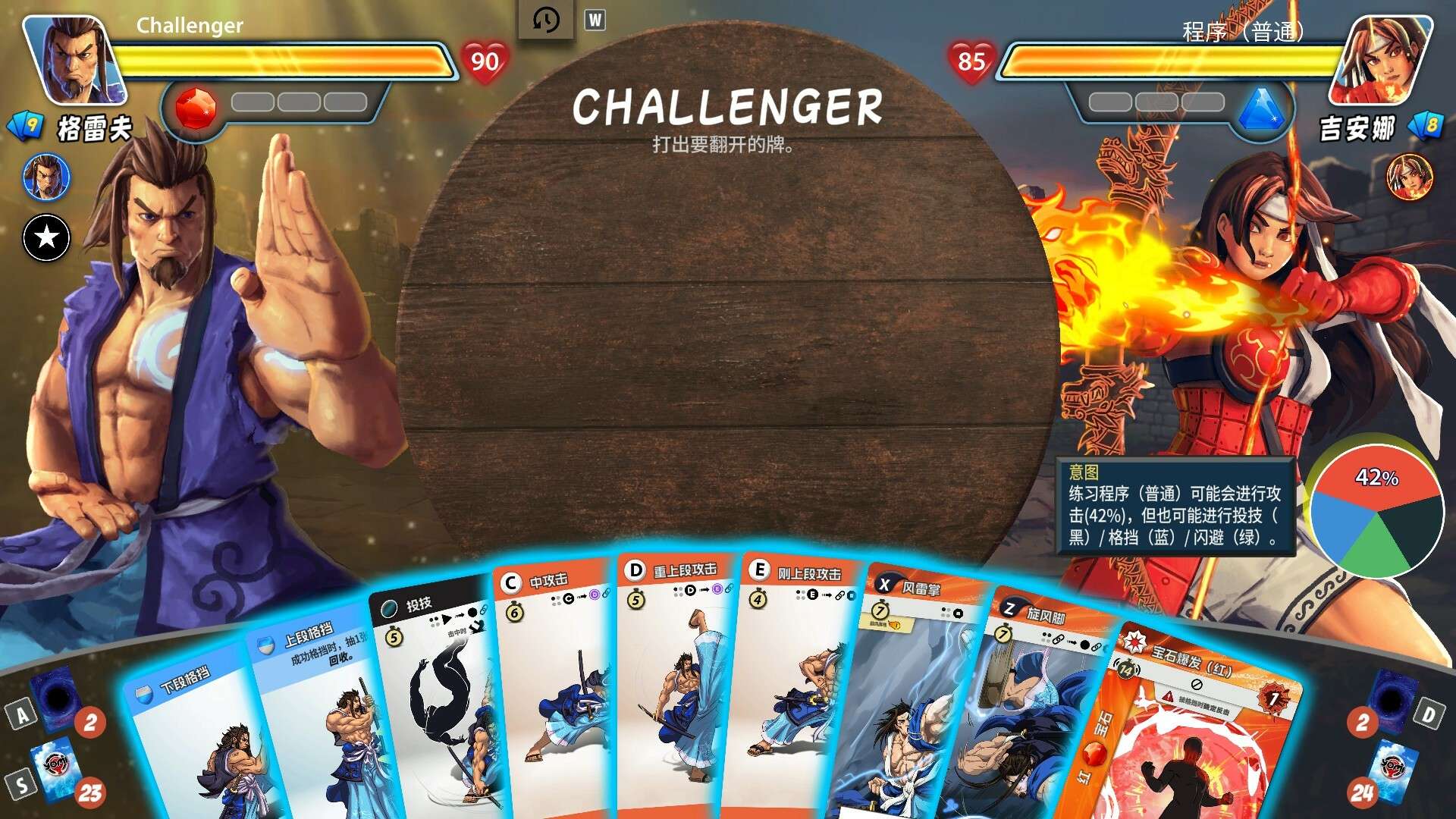 官网自营 格斗游戏 2025-08-09 09:40:54 先觉斗牌2/Yomi 2 《先觉斗牌2/Yomi 2》是一款基于卡牌系统的数字格斗游戏。它并非传统的动作格斗,而是将格斗游戏的策略与心理博弈深度融入卡牌对战框架中。玩家需要像格斗家一样思考,通过出拳、格挡、投掷、闪避等卡牌来模拟一场完整的格斗对决,预判对手行动并做出相克选择。游戏强调“先读”与资源管理,每一张牌都对应格斗中的一个动作,其速度与相克关系决定了胜负。因此,它完美契合格斗游戏(FTG)的核心——策略性对抗与心理战,是桌面卡牌形式的独特格斗体验。游戏截图: