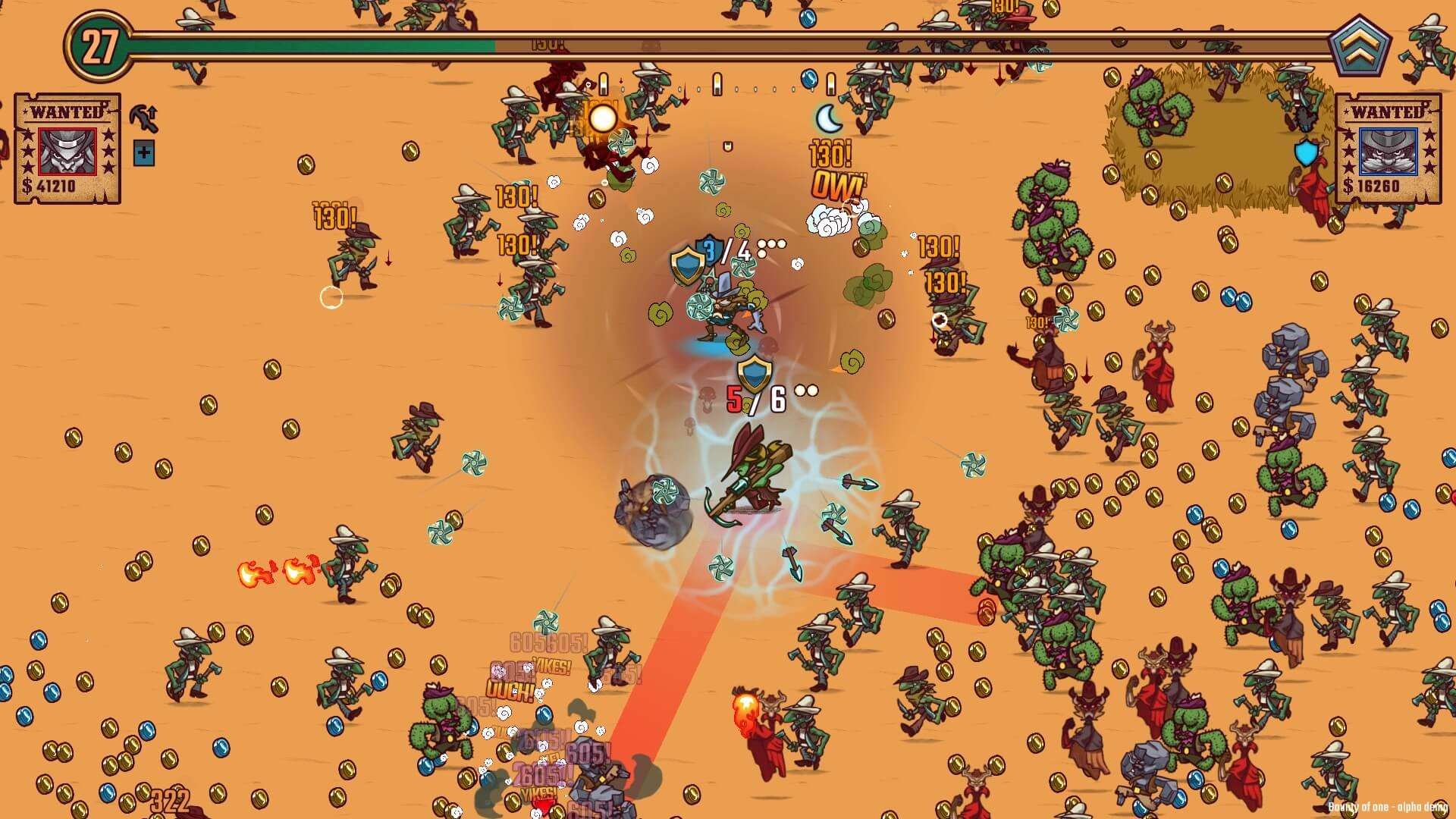 官网自营 射击游戏 2025-09-01 21:07:43 一个人的悬赏/赏金幸存者/Bounty of One 《一个人的悬赏/赏金幸存者/Bounty of One》是一款融合了Roguelite元素的俯视角射击生存游戏。玩家将扮演一名孤独的赏金猎人,在充满敌人的荒野中独自求生。游戏核心玩法为快节奏的射击与走位,通过击败敌人获取金币,用于购买和升级多样化的武器与能力,以应对如潮水般涌来的敌人和强大的Boss。其割草般的爽快战斗体验、局外成长系统以及随机生成的关卡和奖励,使其符合射击游戏(特别是带有生存和肉鸽元素的变体)的核心特征。游戏截图: