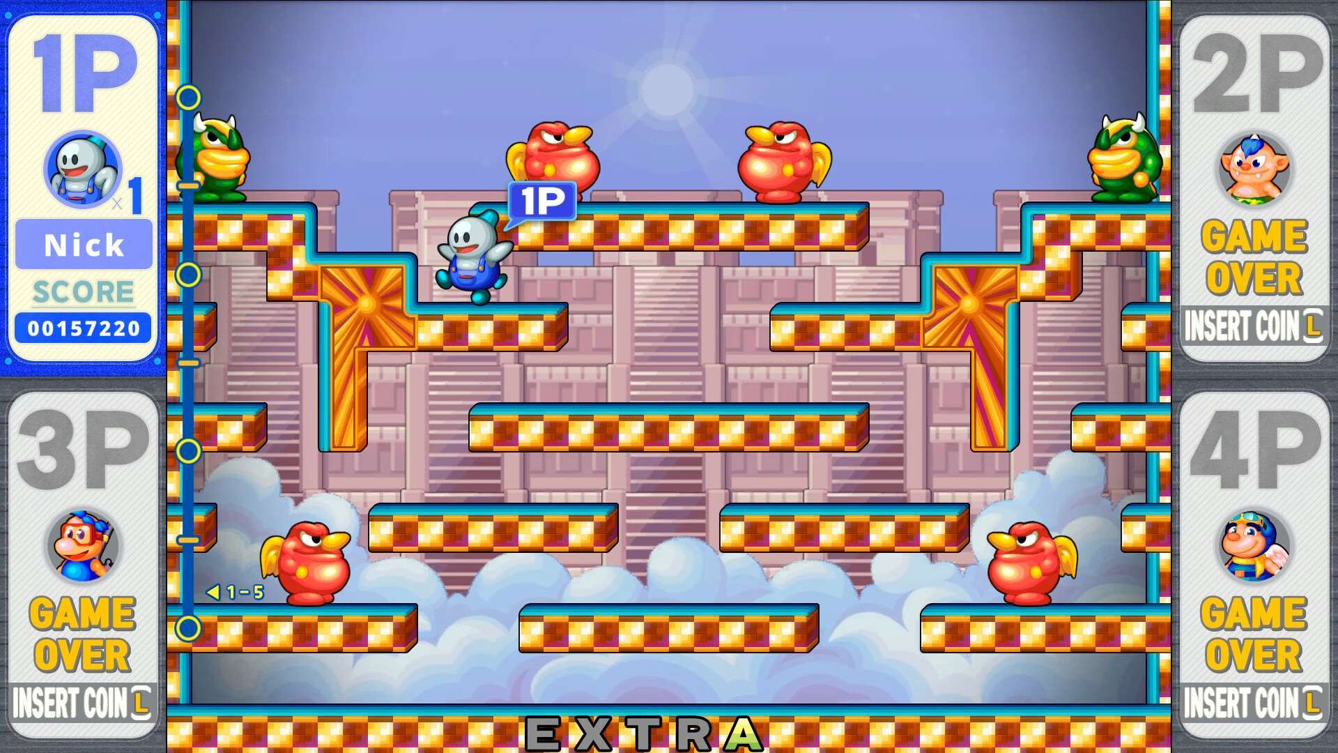 官网自营 动作游戏 2025-04-10 20:26:45 雪人兄弟2 Special/SNOW BROS. 2 SPECIAL 《雪人兄弟2 Special》是经典街机游戏《雪人兄弟》的续作,属于典型的横向卷轴动作游戏。玩家操控可爱的雪人兄弟尼克与汤姆,通过发射雪球将敌人冻成雪球,再将其推走以清除障碍并攻击其他敌人。游戏核心玩法是平台跳跃与清版过关,强调精准的操作、时机的把握以及利用场景和雪球连锁消灭敌人的策略性。其简单的操作、明快的节奏和合作闯关的乐趣,使其成为一款轻松愉快、适合多人游玩的经典动作游戏。游戏截图: