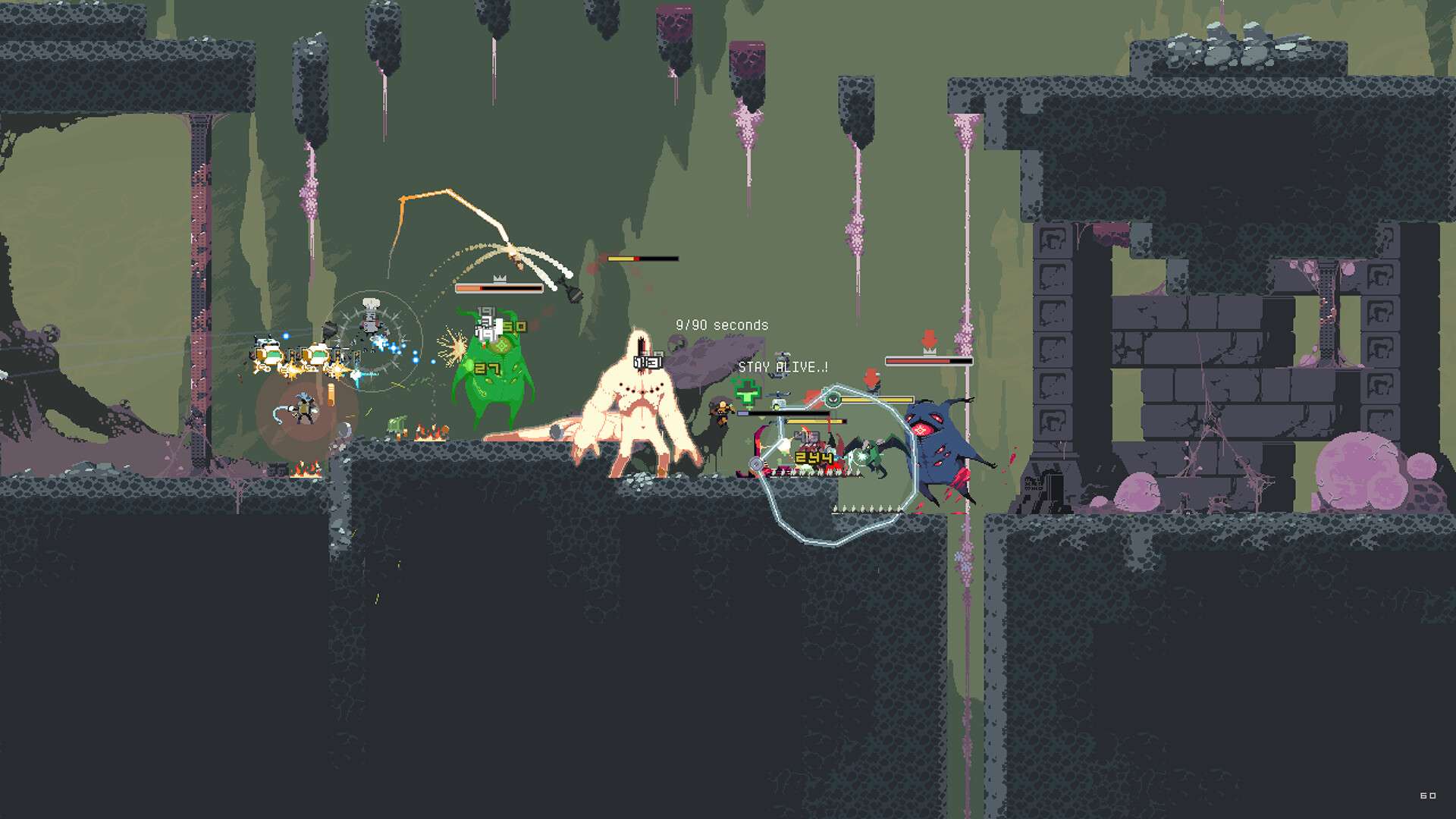 《雨中冒险: 回归》是一款融合了Roguelike元素的2D平台动作游戏。玩家将扮演一名幸存者,在随机生成的外星场景中与潮水般的敌人战斗。游戏核心是快节奏的“割草”式清版体验,通过击败敌人获取金币和随机掉落的强力道具,形成独特的Build组合。随着时间推移,难度会动态增加,考验玩家的操作、决策与资源管理能力。本作在原版基础上进行了全面重制,拥有更精美的像素画面、新的幸存者角色、道具和挑战,支持单人及多人合作,为玩家带来紧张刺激且充满变数的冒险旅程。