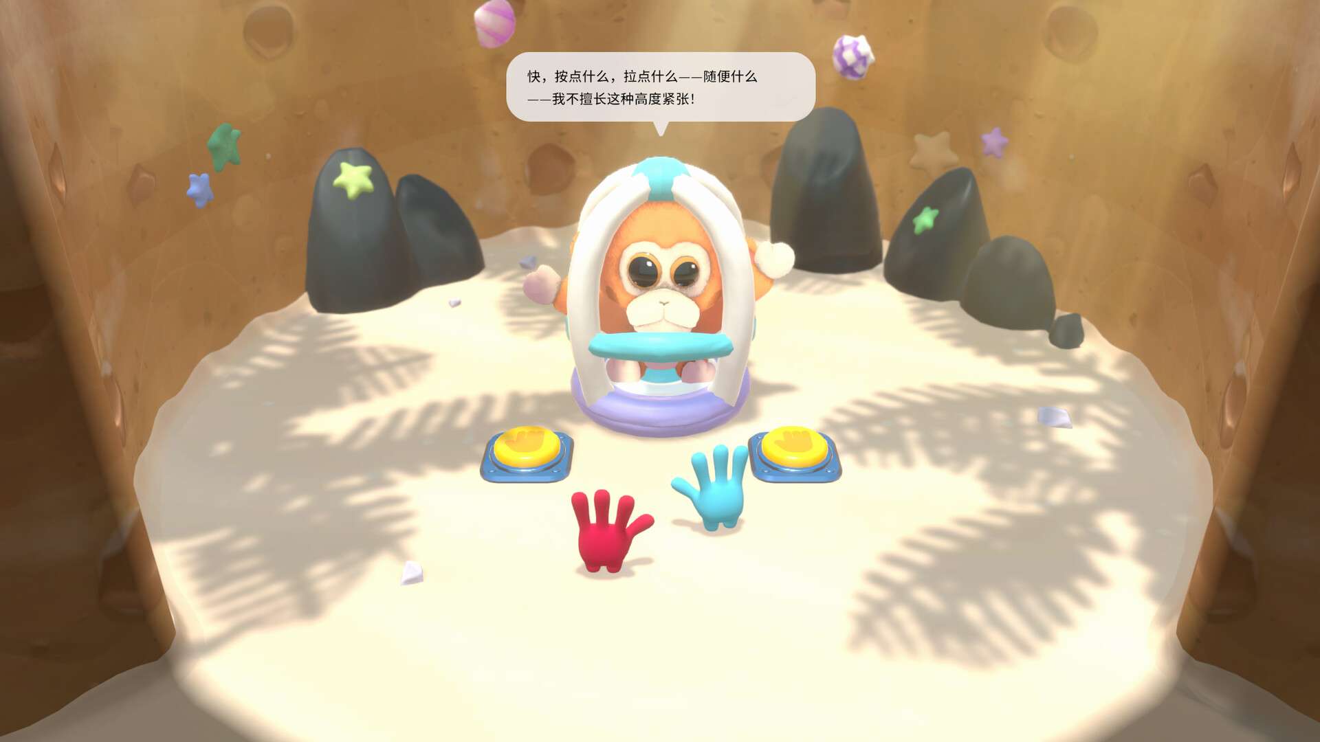 《左左和右右:手拉手!》是一款以合作与混乱为核心的多人派对游戏。玩家将扮演“左左”和“右右”这对被魔法手套连接在一起的伙伴,在摇晃的船只甲板上共同应对各种突发任务,如灭火、修理、装填炮弹等。游戏的核心乐趣在于强制性的物理连接,要求两名玩家必须紧密协调移动与操作,任何步调不一致都会导致滑稽的失误和手忙脚乱的场面。其轻松卡通的美术风格、简单易懂的规则和专注于制造欢乐的玩法,使其非常适合朋友或家庭聚会,共同体验合作与“互坑”并存的独特乐趣。