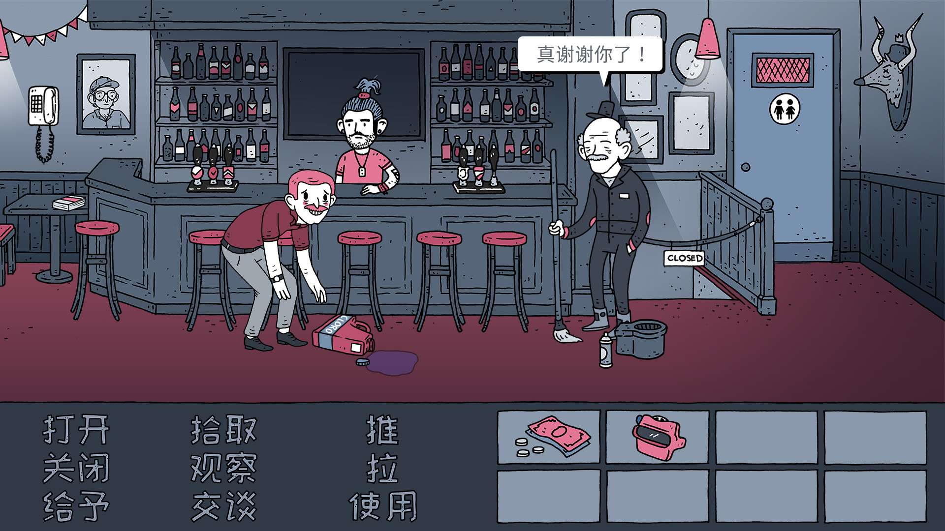 官网自营 冒险解密 2026-01-03 23:09:50 老铁,我啤酒呢?/Dude, Where Is My Beer? 《老铁,我啤酒呢?》是一款风格独特的点击式冒险解谜游戏。玩家将扮演一位在挪威小镇寻找啤酒的年轻人,通过探索环境、与古怪的居民对话、收集物品并解开一系列荒诞谜题来推进剧情。游戏以其复古的像素美术、黑色幽默的对话和充满北欧文化梗的叙事而著称,整体氛围轻松诙谐,核心玩法围绕逻辑推理和场景互动展开,是典型的指向点击冒险解谜(AVG)体验。游戏截图: