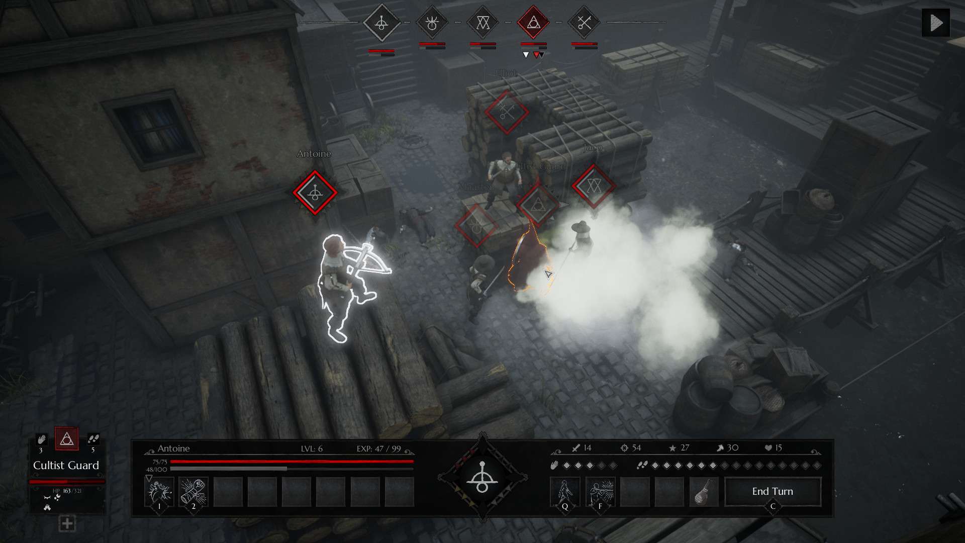 官网自营 角色扮演 2021-09-14 23:16:22 黑色传奇/黑暗传说/Black Legend 《黑色传奇》是一款以17世纪风格城市为背景的回合制策略角色扮演游戏。玩家将组建一支佣兵小队,深入被浓雾与疯狂笼罩的格兰特城,对抗受炼金术蛊惑的邪教势力。游戏核心是富有深度的回合制战斗系统,玩家需巧妙运用基于“体液学说”的炼金术技能组合,对敌人施加并引爆各类状态效果,形成连锁战术。其黑暗压抑的艺术风格、网格化战场布局以及对历史与神秘元素的融合,为玩家呈现了一段充满挑战与策略深度的黑暗奇幻冒险。游戏截图: