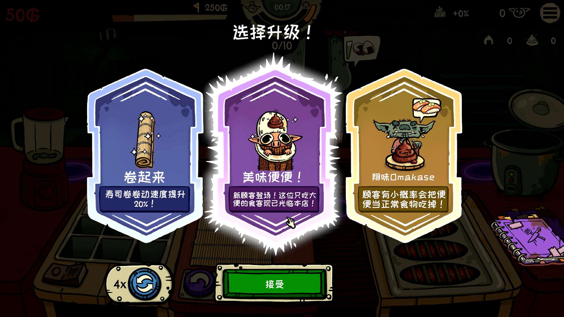 官网自营 休闲益智 2026-02-18 09:03:32 哥布林寿司/Goblin Sushi 《哥布林寿司》是一款以烹饪与合作为核心的休闲益智游戏。玩家将扮演一名哥布林厨师,在充满奇幻色彩的厨房中,面对源源不断的订单,需要快速准确地制作各种寿司。游戏强调手忙脚乱的实时操作与多人协作,类似于《胡闹厨房》的欢乐体验。在混乱的备料、烹饪、上菜流程中,与朋友默契配合是成功的关键。游戏画风诙谐可爱,节奏轻快,非常适合朋友聚会时共同游玩,在欢声笑语中体验经营寿司店的忙碌与乐趣。游戏截图: