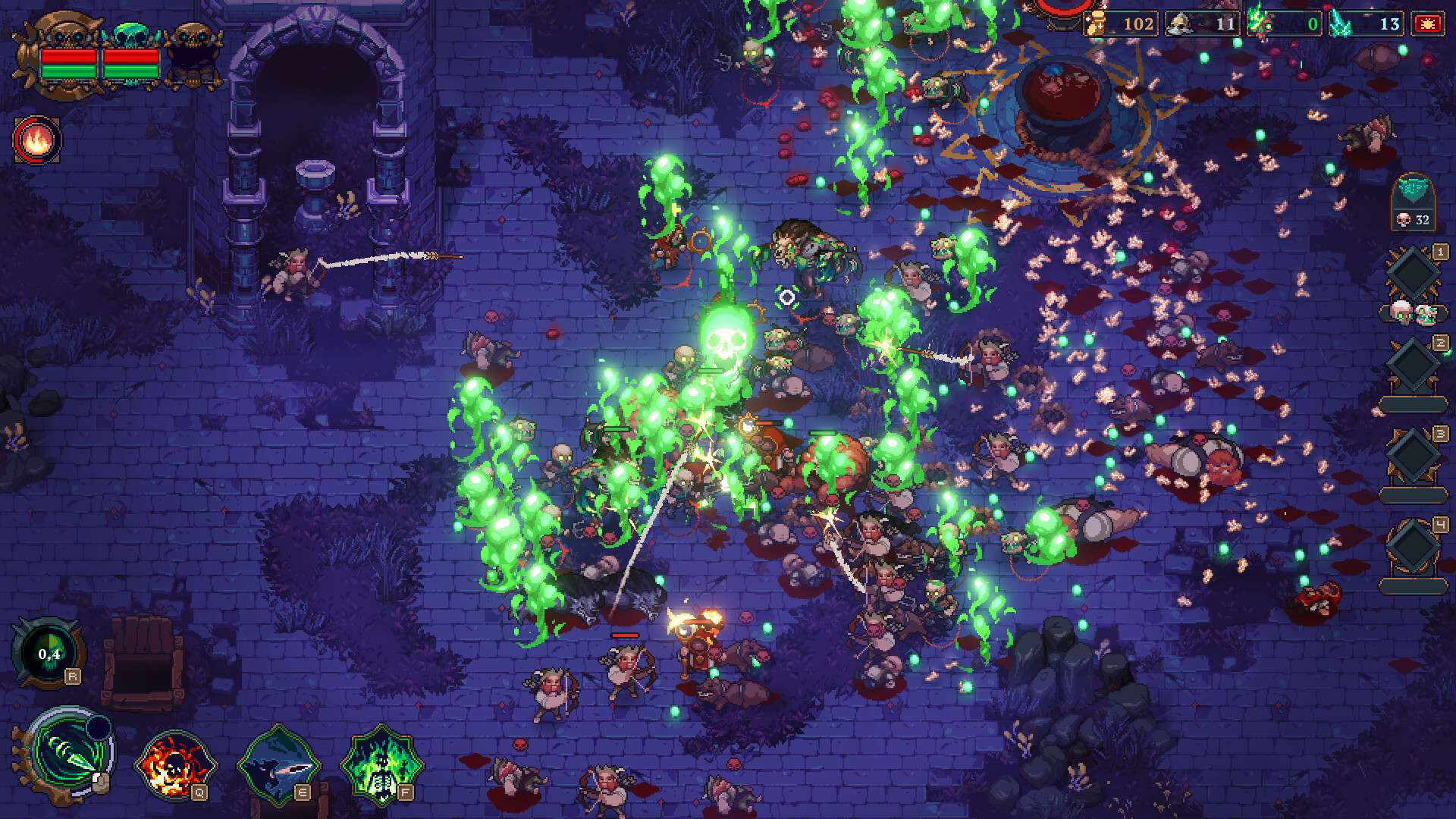 官网自营 策略 2023-10-30 12:09:20 亡灵法师/The Unliving 《亡灵法师/The Unliving》是一款融合了Roguelike元素的动作策略游戏。玩家扮演一位强大的亡灵法师,在黑暗奇幻的像素世界中,通过召唤和控制亡灵大军进行战斗。游戏核心玩法在于策略性地组合不同的亡灵单位,利用其独特能力对抗敌人、攻克关卡。每次冒险都随机生成地图与遭遇,结合永久死亡机制,提供了丰富的可重玩性。玩家需要不断解锁新法术、升级能力,并制定战术来应对愈发强大的敌人,体验从死亡中汲取力量、指挥不死军团的独特快感。游戏截图: