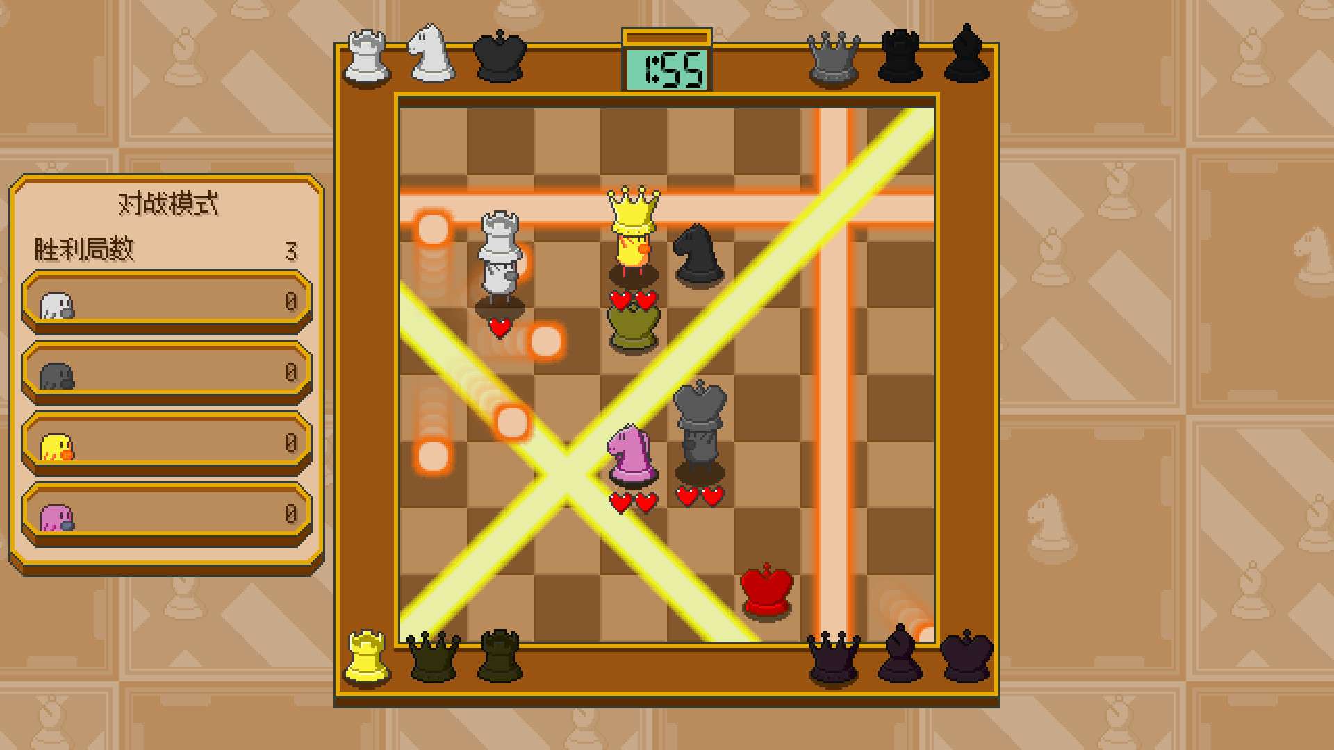 官网自营 休闲益智 2025-04-24 23:12:10 爆破象棋/Chessplosion 《爆破象棋》是一款将国际象棋规则与炸弹爆破机制巧妙结合的创新休闲益智游戏。玩家在传统棋盘上移动棋子,但每一步都会在落子处留下一颗定时炸弹。炸弹爆炸会清除周围棋子,创造出连锁反应和策略性清场效果。游戏核心在于规划移动顺序,利用爆炸连锁高效消灭敌方棋子,同时保护己方关键单位。它既考验经典象棋的战术思维,又融入了炸弹引爆的爽快解谜乐趣,节奏明快,规则易懂但策略深度十足,非常适合喜欢动脑和享受瞬间解压快感的玩家。游戏截图:
